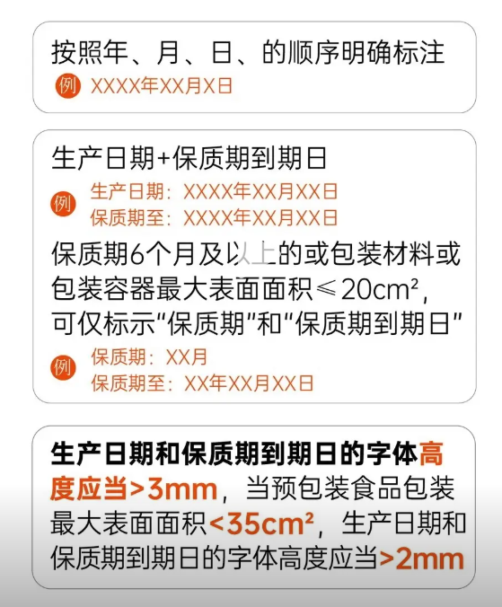 生产日期与保质期:生产日期指形成最终销售单元的日期,保质期需注明贮存条件。