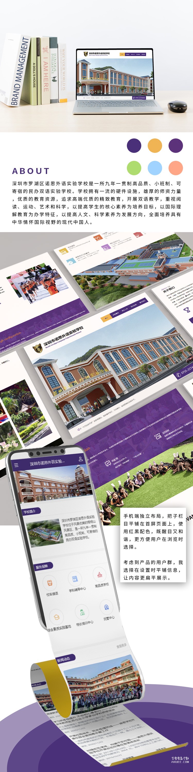 学校整体风格以世界顶级学府“哈佛大学”为蓝本,建造经典传世的欧式情怀建筑,使之具有浓郁的英伦风格校园,网站也延续英伦风格设计。