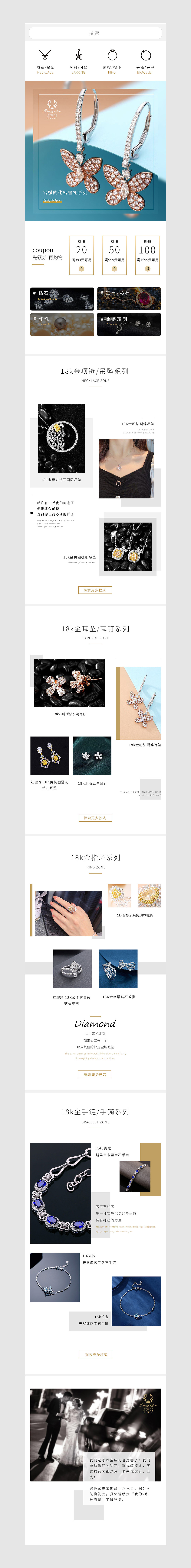 珠宝类小程序,客户喜欢极简杂志风格,抛开传统商品列表排序,让不同类别融为一体,又各有不同。